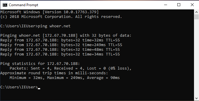 Ping (Packet Internet Groper) is a built-in system utility for determining the availability of a particular IP address. When this utility is launched, special data packets are sent to the specified IP address, and a response is expected. The work of this utility results in the statistics of lost packets and the round-trip time.